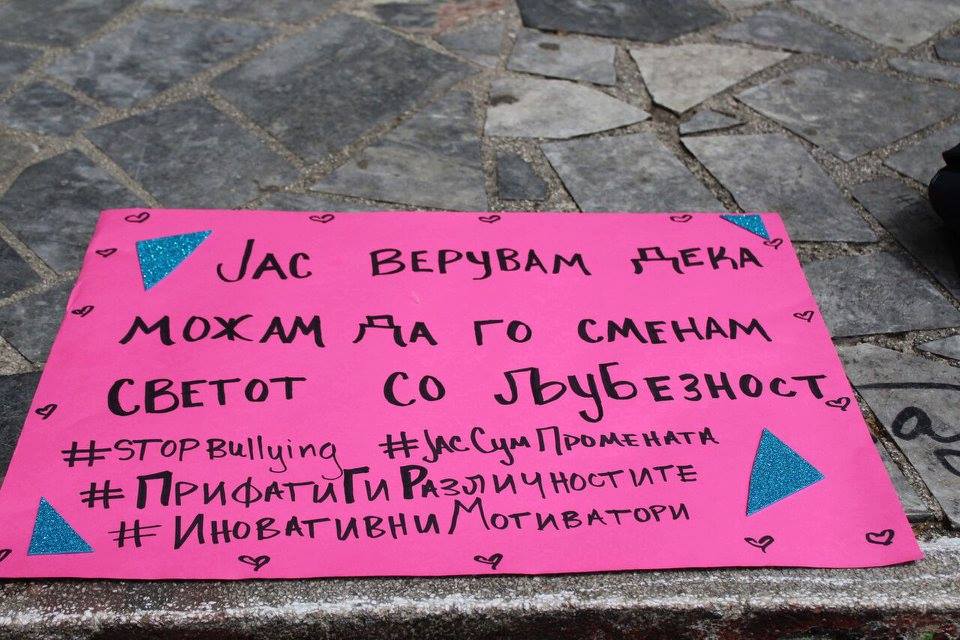 На ден 6ти Мај 2017 во Градскиот Парк на Школка беше одбележан Светскиот ден против меѓуврсничко насилство (булинг) во организација на Иновативни Мотиватори – ЈАС СУМ / Innovative Motivators – IM во соработка со Здружение за дислексија Ајнштајн, Волонтерски Центар Скопје, NewMan’s Business Accelerator и Субверзивен Фронт / Subversive Front.